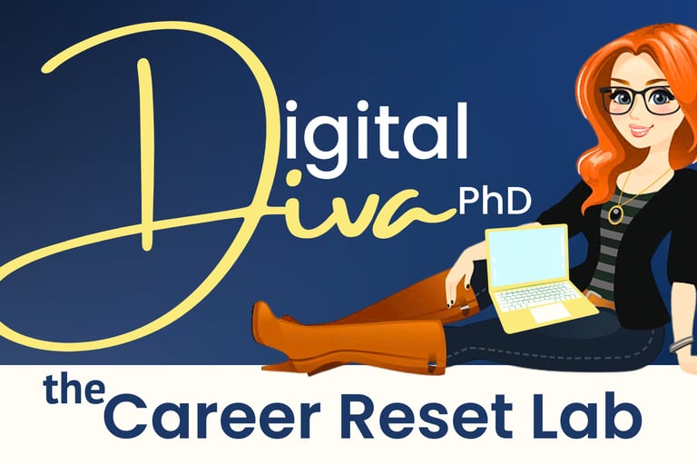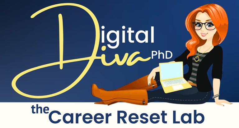 The DigitalDivaPhD - Career Reset Lab is here to help you get control of the panic, rein it in, and set out a calm, achievable plan to manage your job search, without letting the rest of your life spiral out of control.